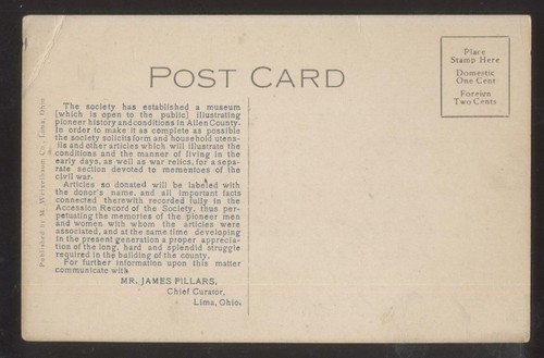 Postcard Lima Ohio Oh Allen County Historical Society In Memorial Hall 1910 S Ebay
